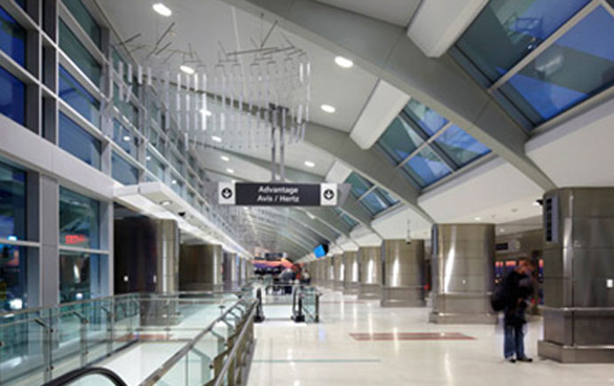 Project management and pre-design services for remote rental car facility that is connected to the main terminal by a 1/6 mile elevated guideway. The facility includes 2 four story parking decks; 2.8 million square feet of parking; more than 8,700 ready, return and storage parking spaces; 1,200 additional ground storage spaces; 10 rental car agencies; 137,000 square foot customer service center; 6 two car APM trains; 1 maintenance and recovery vehicle; 1.3 acre APM train maintenance facility; 27 acre maintenance, wash and fuel facilities; and fuel pumps and wash bays.