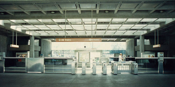 The canopy is constructed of intersecting reinforced concrete covered with skylights to permit natural light to penetrate the area below. The station support facility is located at an intermediate level.